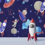 کاغذ دیواری کودک طرح کهکشان و فضانورد | چند رنگ کد 12103