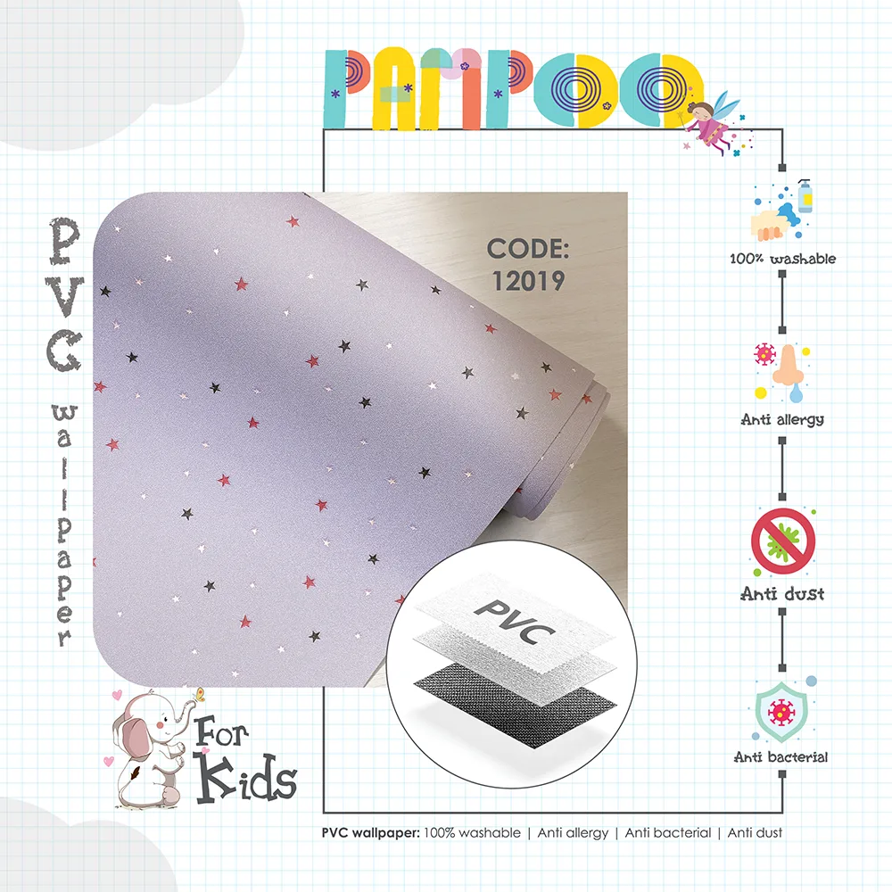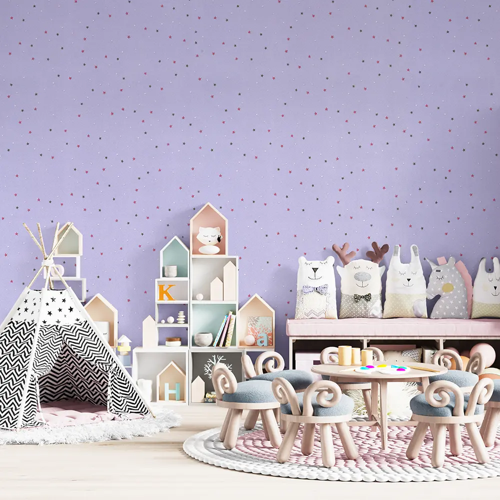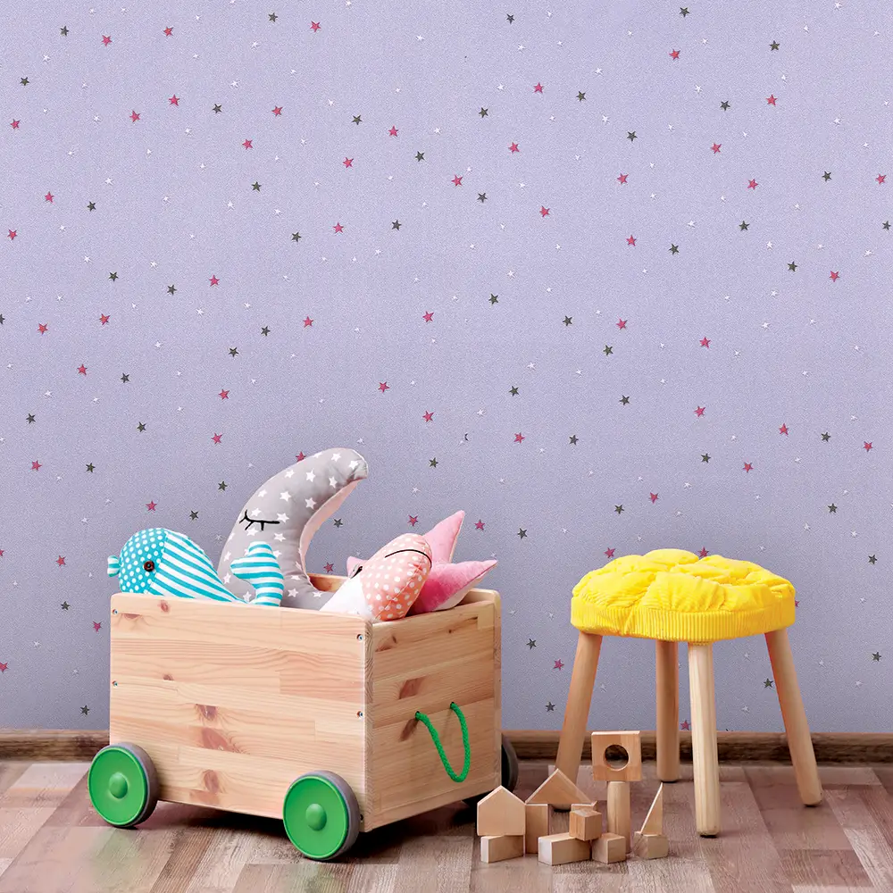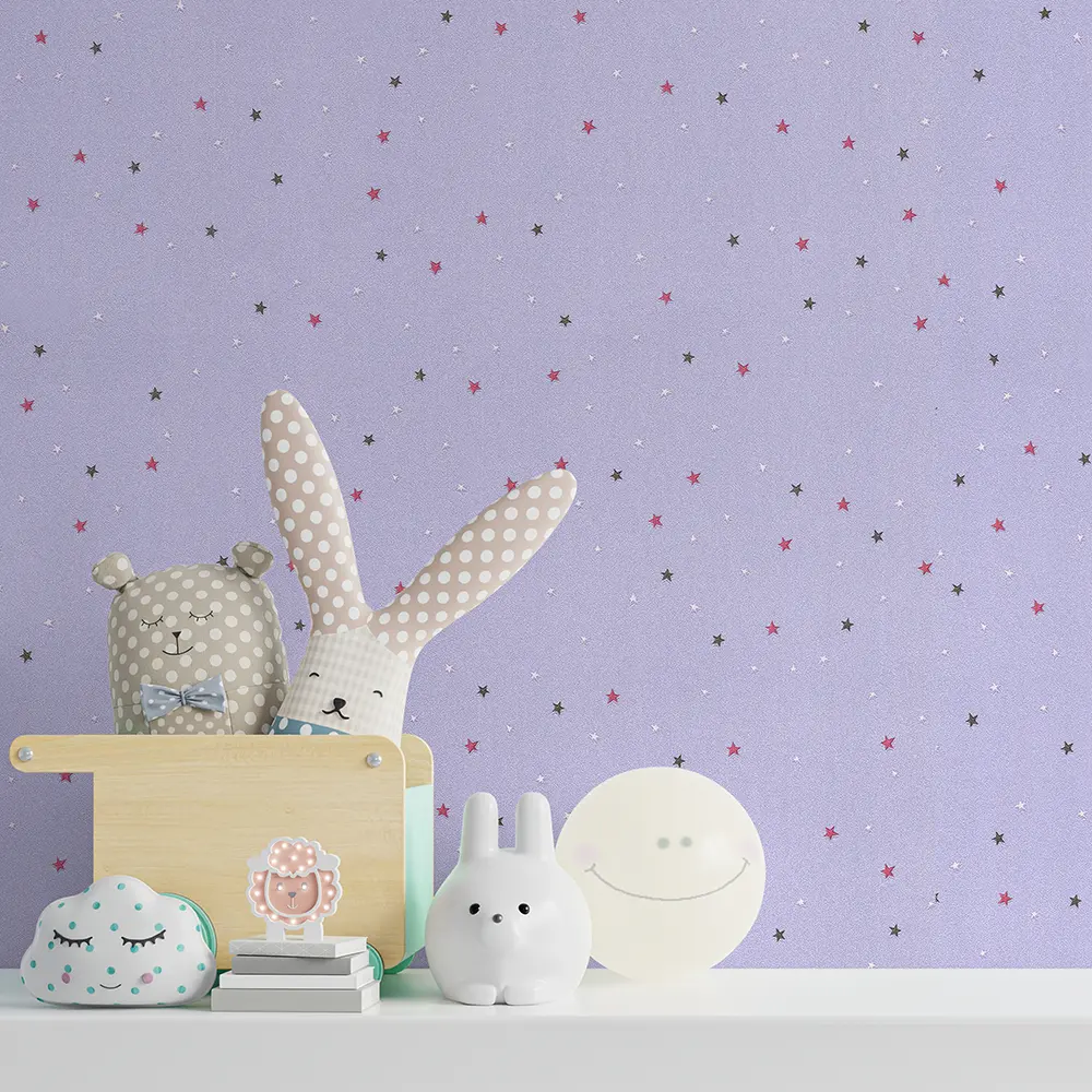 کاغذ دیواری کودک طرح ستاره باران | بنفش کد 12019