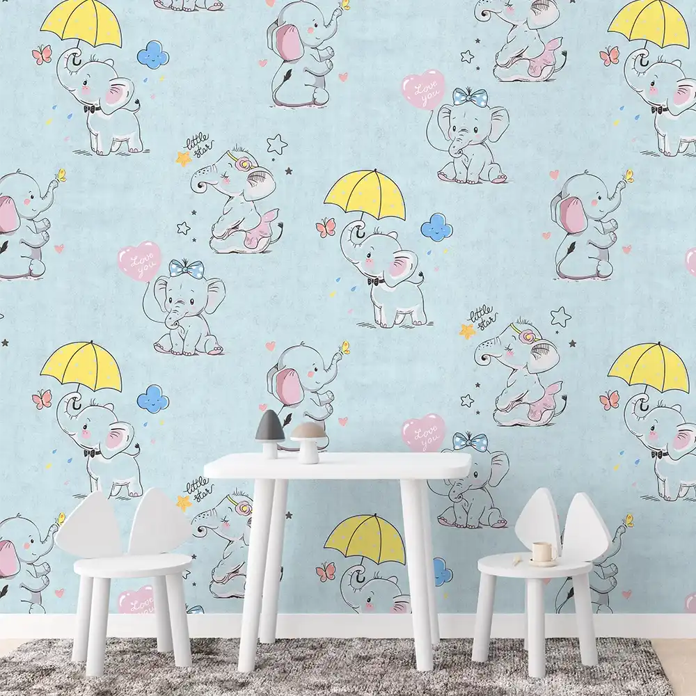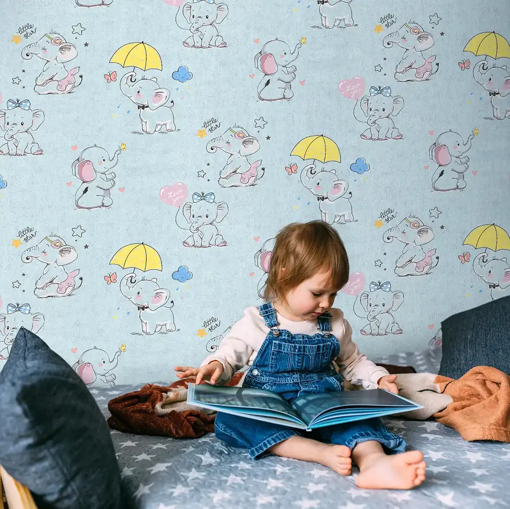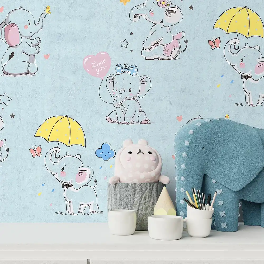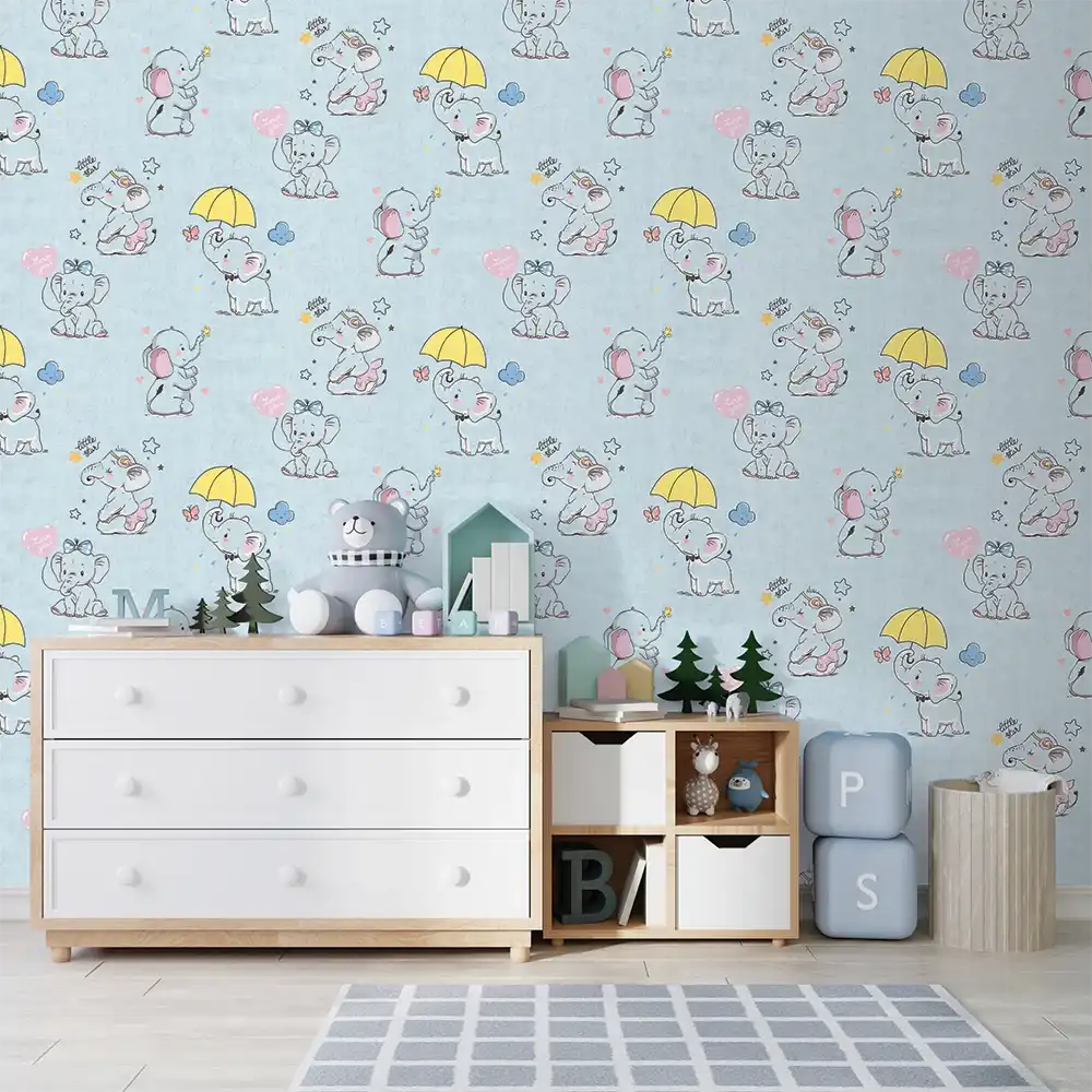 کاغذ دیواری کودک طرح فیل کوچولوها | آبی کد 12001 از آلبوم پمپو برند اکستریم والز.