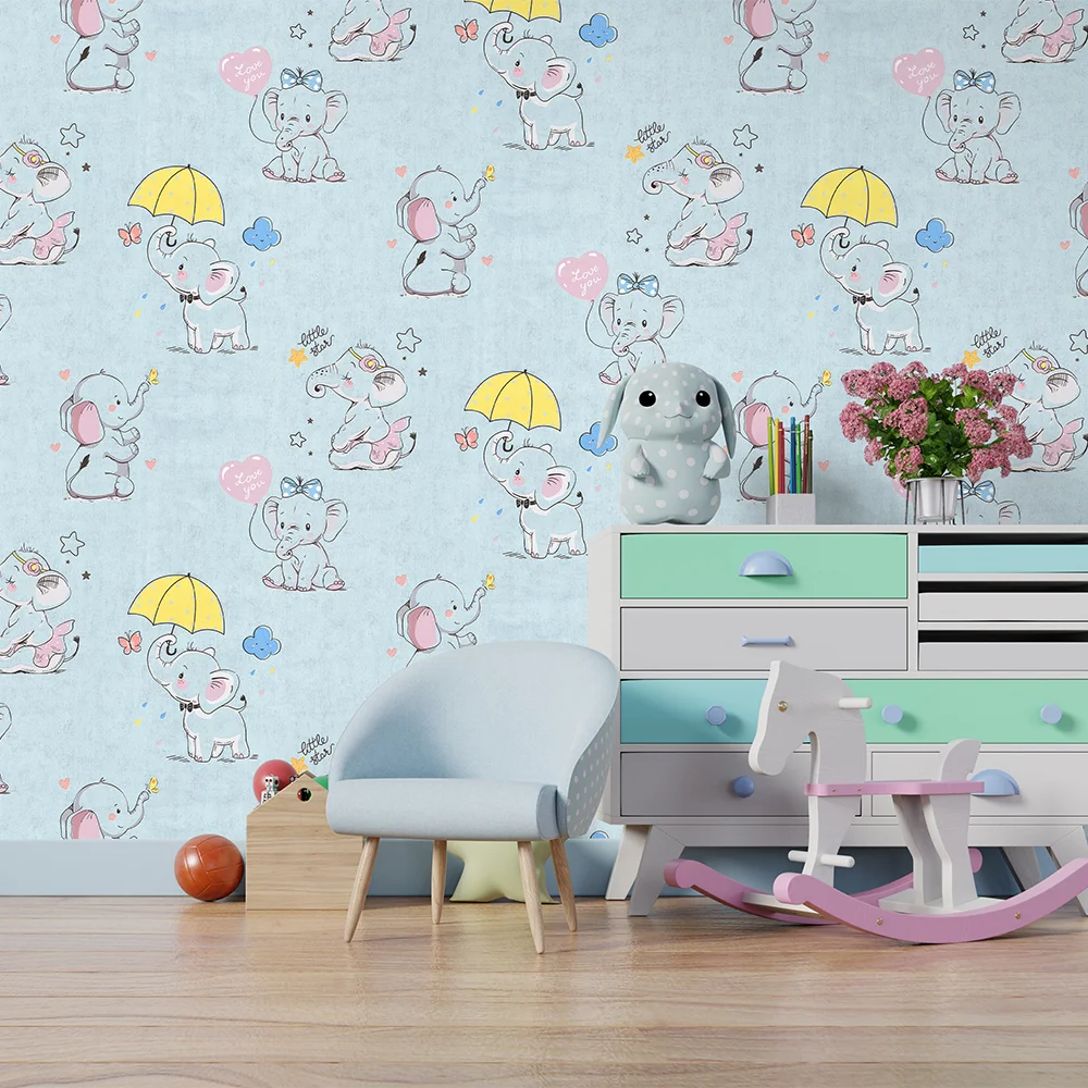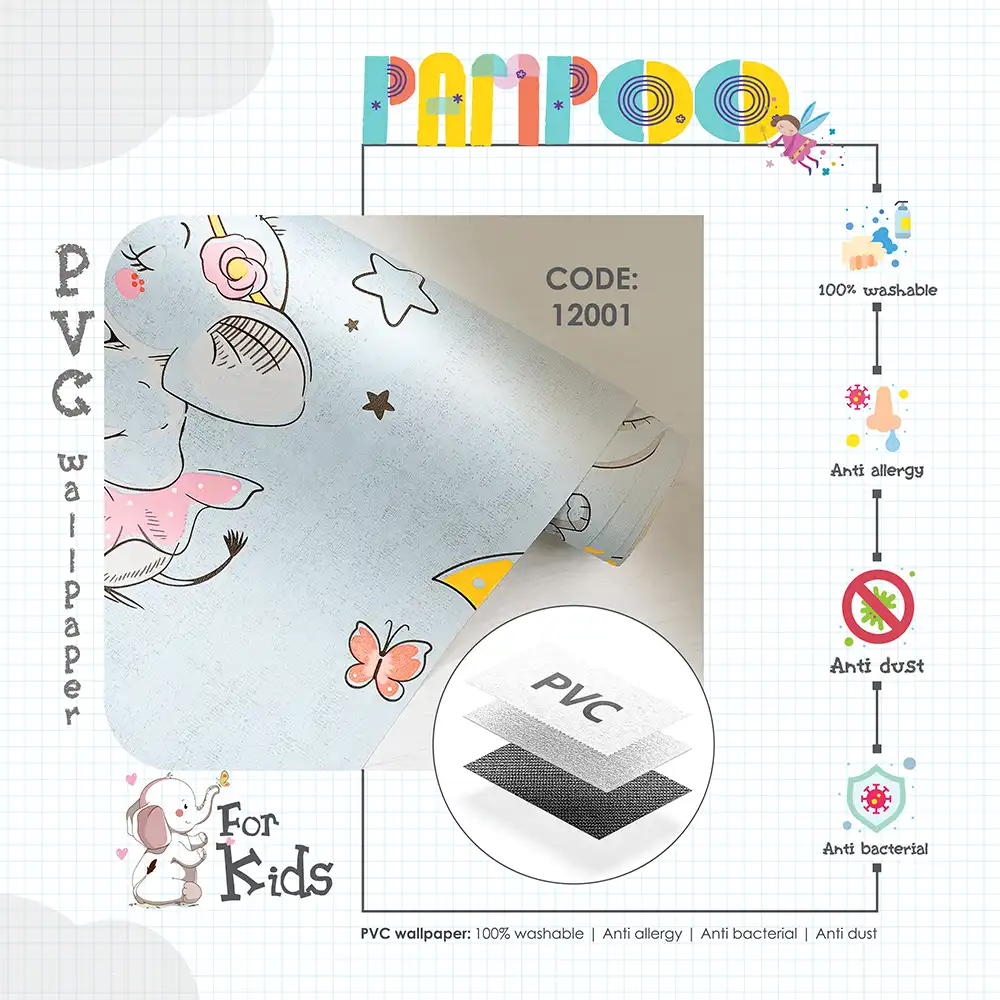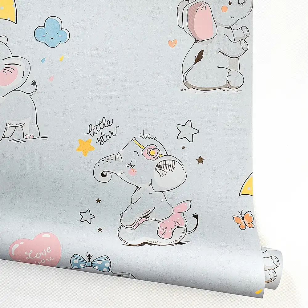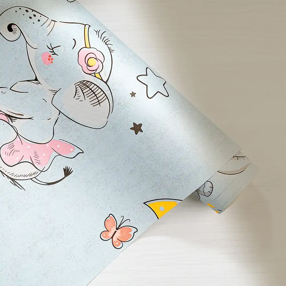 کاغذ دیواری کودک طرح فیل کوچولوها | آبی کد 12001 از آلبوم پمپو برند اکستریم والز.