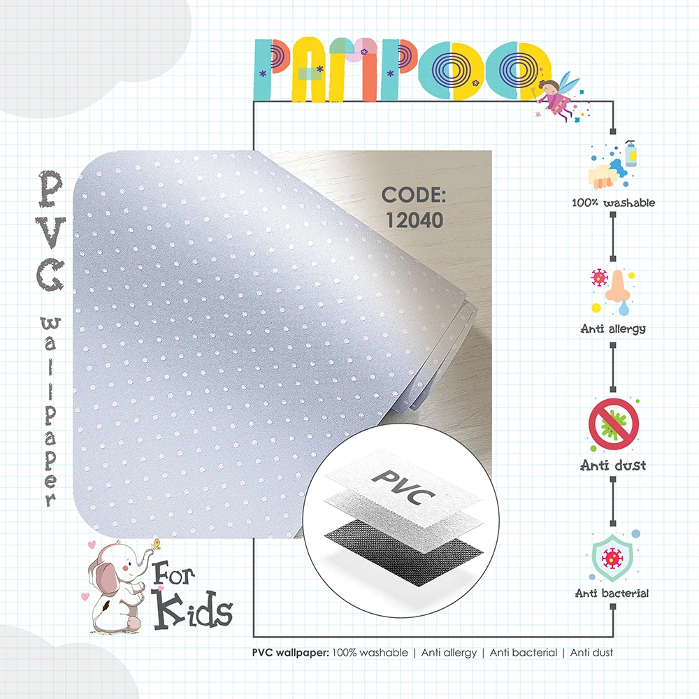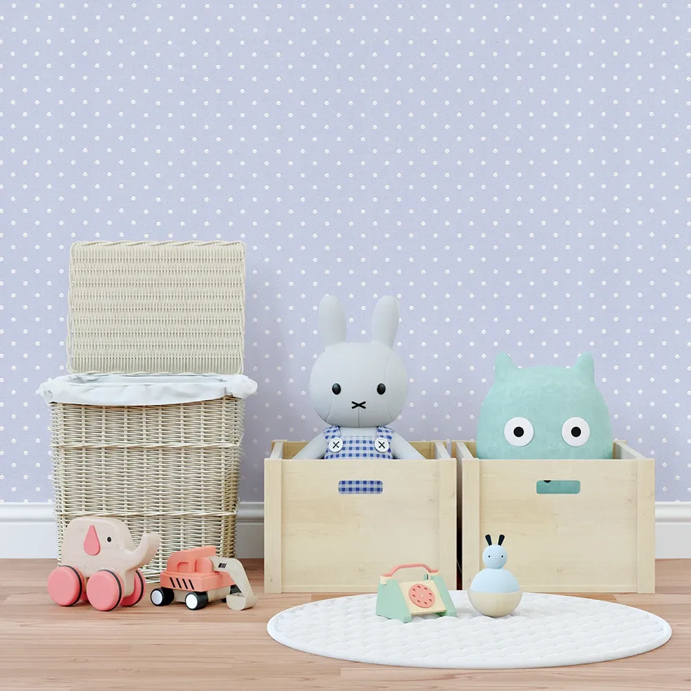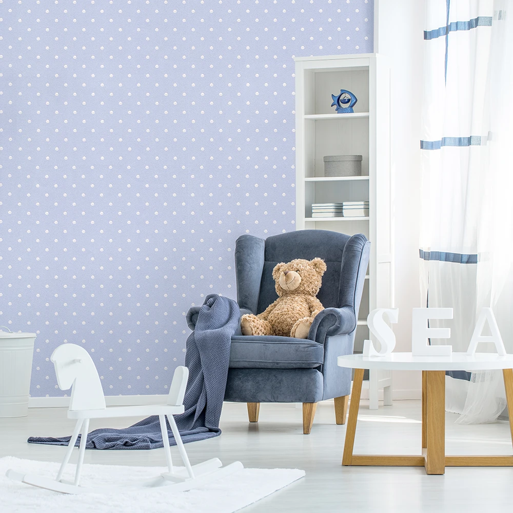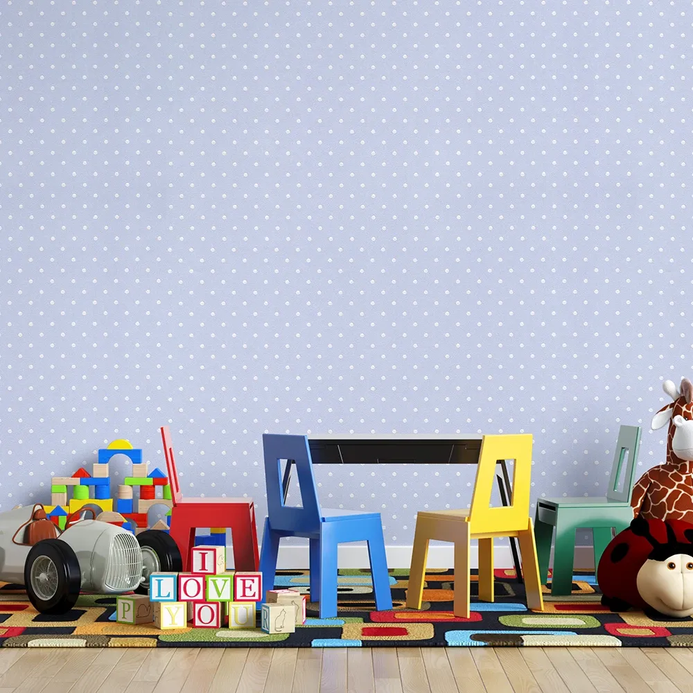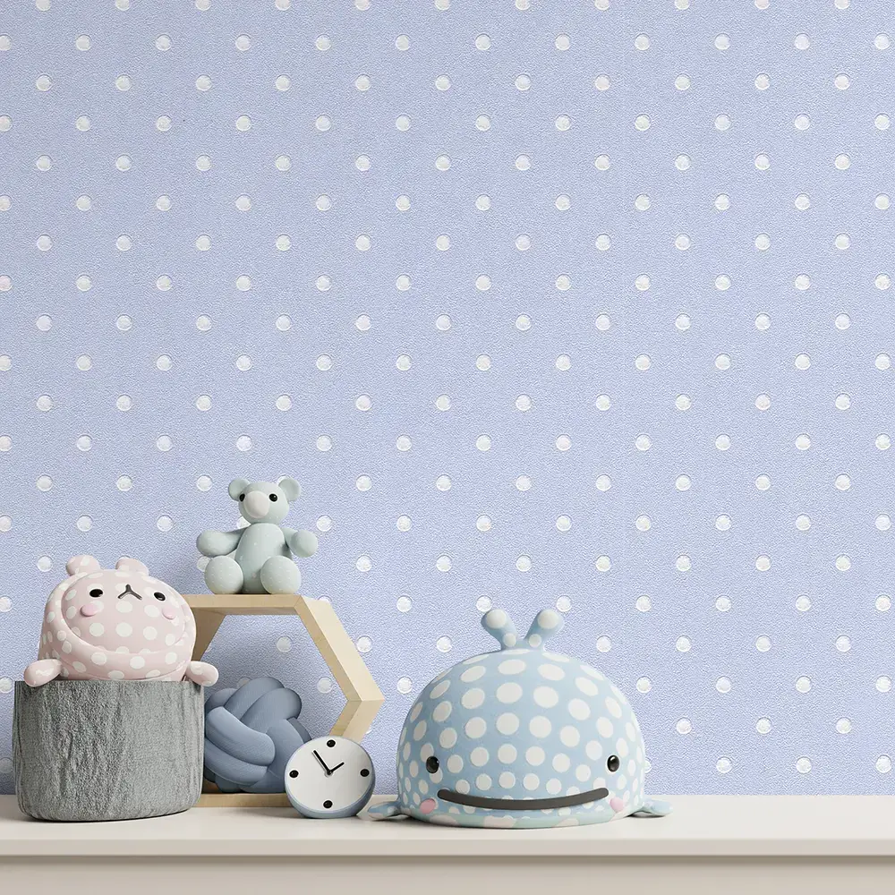 کاغذ دیواری کودک طرح نقطه‌چین | آبی / سفید کد 12040