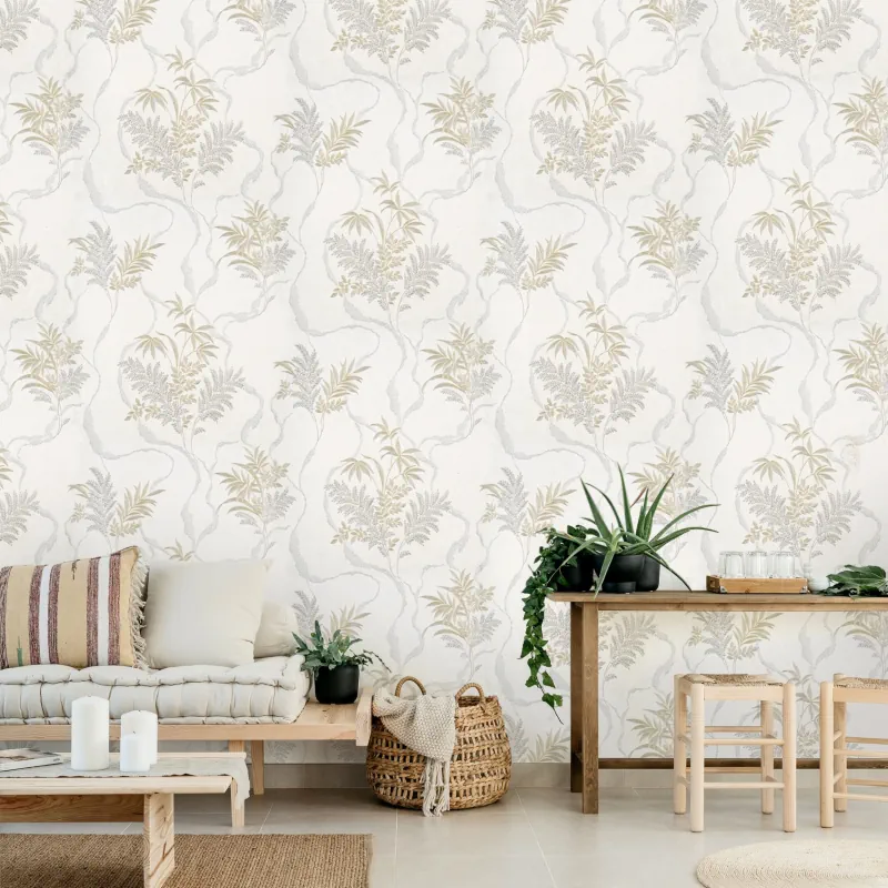 کاغذ دیواری پذیرایی سفید طلایی (بر روی دیوار شاخص)